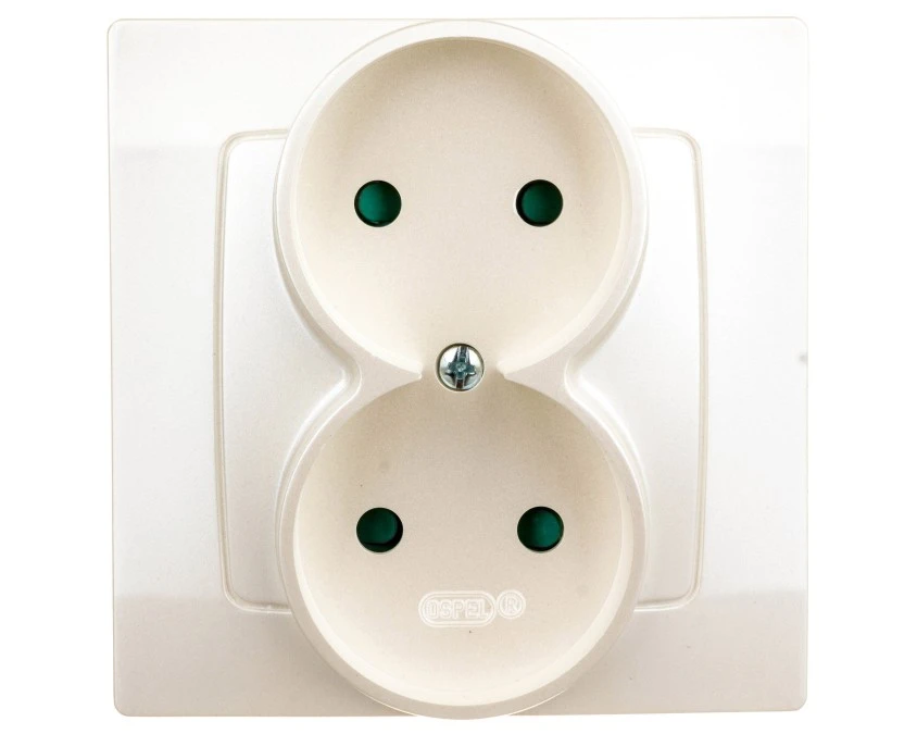 KARO Gniazdo podwójne b/u z przesłonami ecru perłowy GP-2SP/42