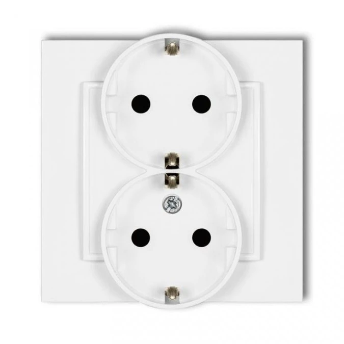 MINI Gniazdo podwójne z uziemieniem SCHUKO 2x(2P+Z) (przesłony torów prądowych) biały mat 25MGP-2sp
