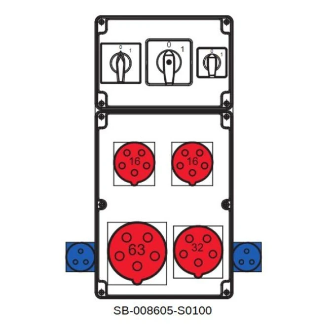 Rozdzielnica 0-1(32A) 0-1(16A) 2x5x32A 2x5x16A 2x3x16A INA=32A SB-008605-S0050-54