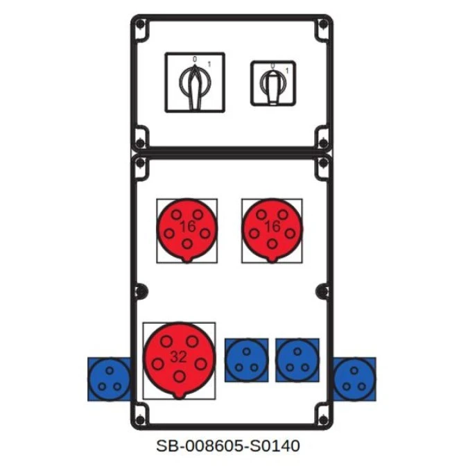 Rozdzielnica 0-1(32A) 0-1(16A) 2x5x32A 2x5x16A INA=32A IP54 SB-008605-S0020-54