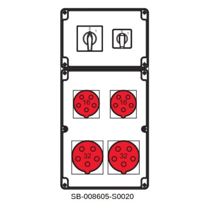 Rozdzielnica 0-1(32A) 0-1(16A) 2x5x32A 2x5x16A INA=32A IP54 SB-008605-S0020-54