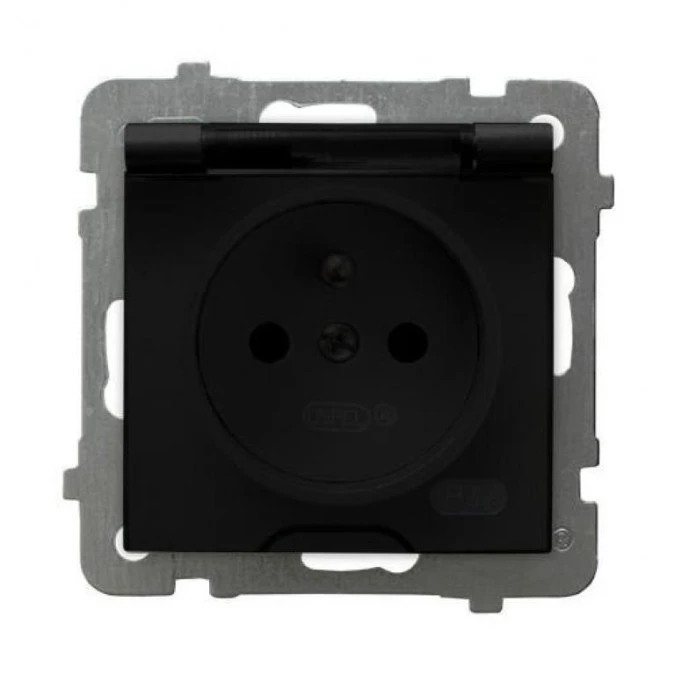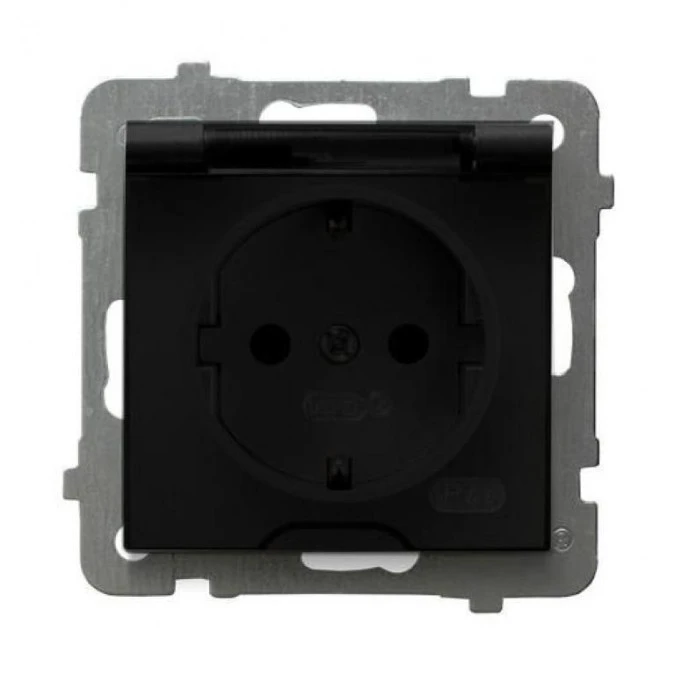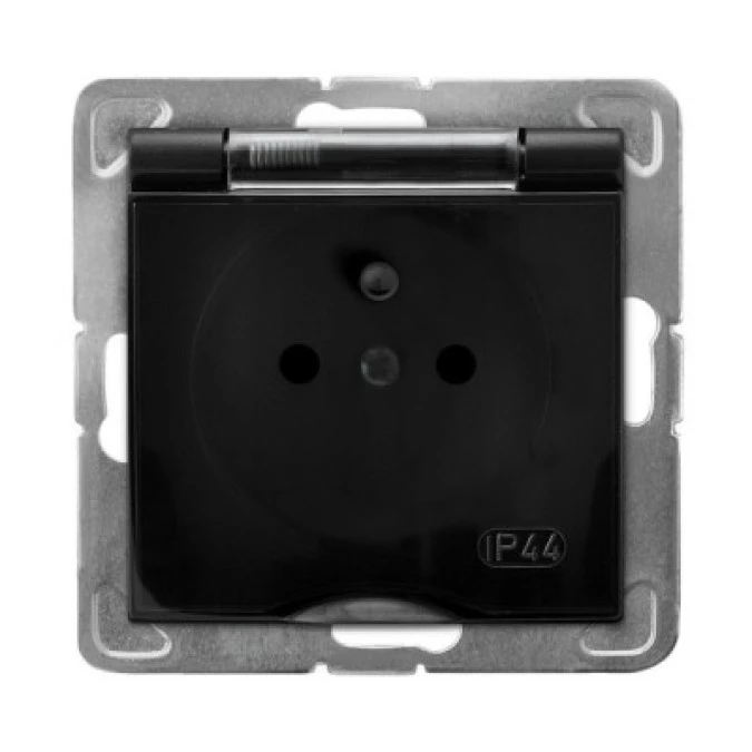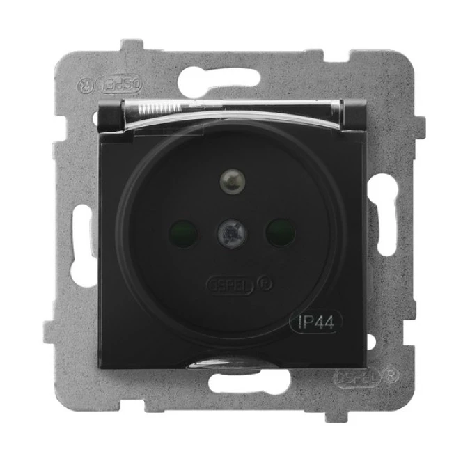 AS Gniazdo pojedyncze z uziemieniem IP44 z klapką czarny GPH-1GZ/m/33/d OSPEL