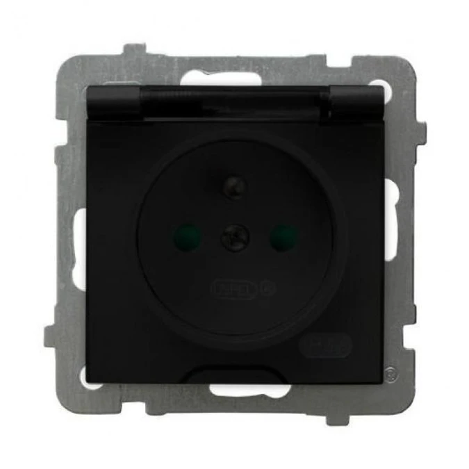 15. Gniazdo pojedyncze z/u IP44 czarny metalik GPH-1RZ/m/33/d klapka dymna SONATA Ospel 32.04