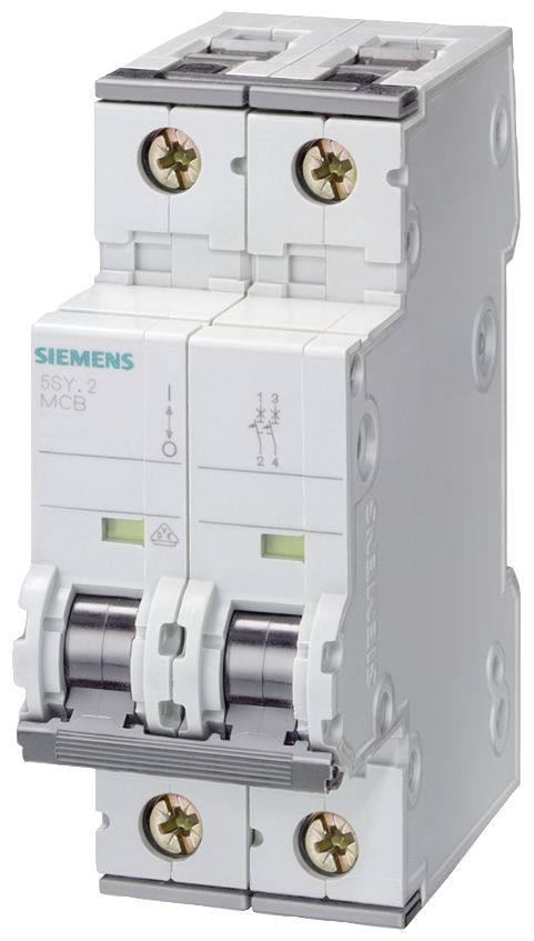 5. Wyłącznik nadprądowy MCB, Typ B, 2-biegunowy, 4A, 230V, 60V, Siemens, 5SY4 292.25