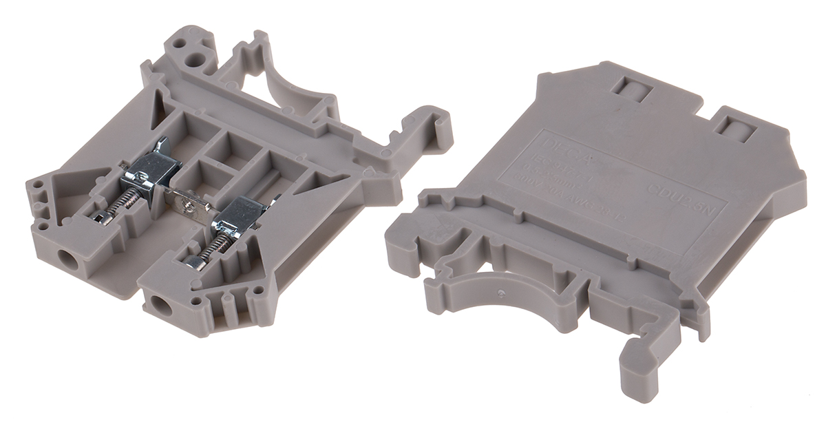 10. Kostka zaciskowa na szynie DIN RS PRO poziomy: Pojedynczy 28 → 12AWGŚruba 20 (UL/CSA) A, 24 (IEC) A 800 V 18.98