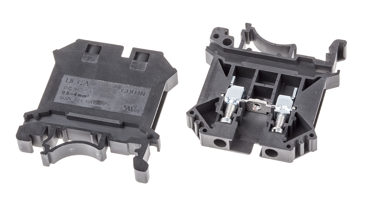 13. Kostka zaciskowa na szynie DIN RS PRO poziomy: Pojedynczy 22 → 10AWGŚruba 30 (UL/CSA) A, 32 (IEC) A 800 V 20.12