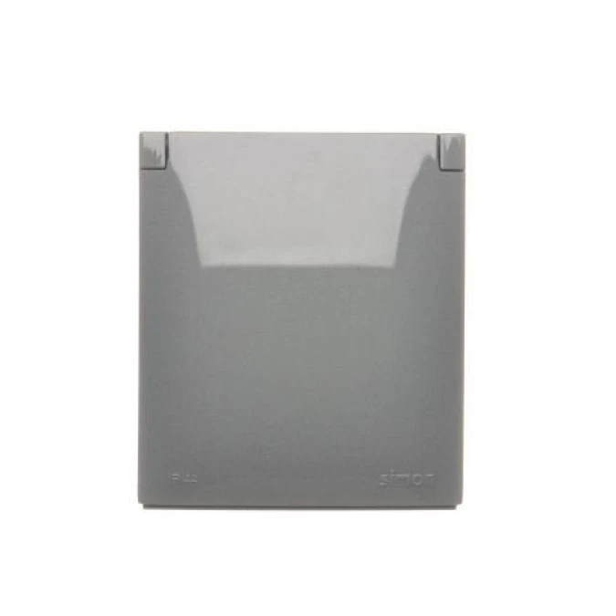 8. Simon Aquaclick Gniazdo natynkowe, pojedyncze z uziem., klapka w kolorze, z przesł. torów prąd., IP44 ciemnoszary ACGZ1CZ/18 18.20