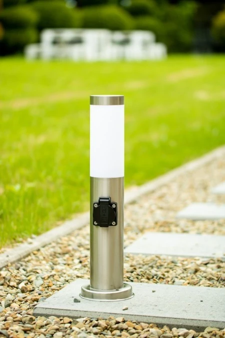 Lampa Ogrodowa Zewnętrzna E27 INOX SŁUPEK 65cm z Gniazdem 230V Lilium Lumiled