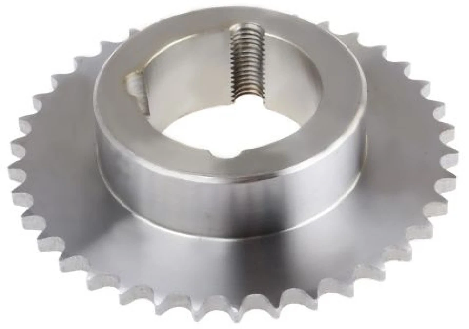 2. Koło łańcuchowe drabinkowe, 38 zębów, 06B-1, Nakrętka stożkowa, śr toczna: 115.35mm, Stal 136.84