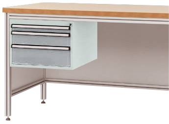 Manuflex ZB4675.7016 Gehäuse-Unterbau für ALU-Arbeitstische, Nutzhöhe 300 mm mit 3 Schubfächern, für Tischtiefe 600 mm