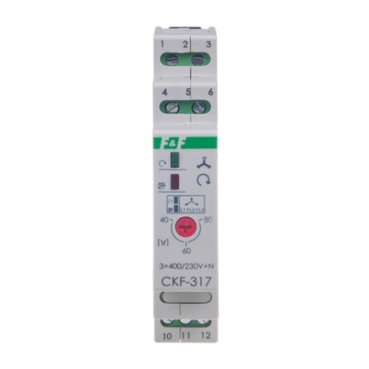 Czujnik kolejności i zaniku faz z reg. progiem asymetrii 1-fazowy 1P 400V+N CKF-317 TRMS F&F FILIPOWSKI