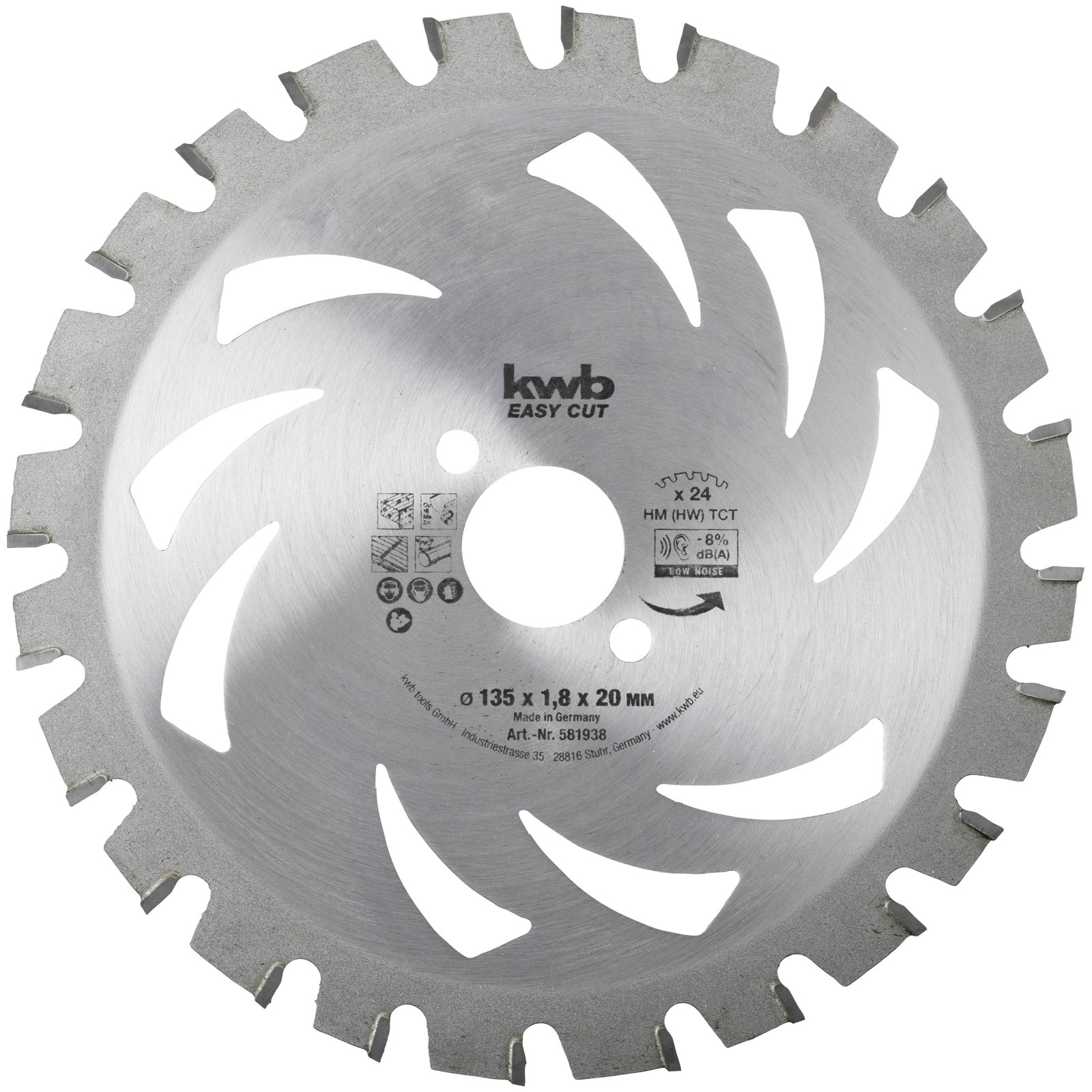 kwb 581938 Carbide Circular Saw Blade 135x20mm 24 cogs cross slots