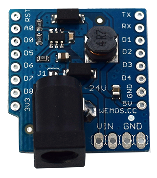 Power shield for WeMos D1 Mini. Connect DC voltage ...