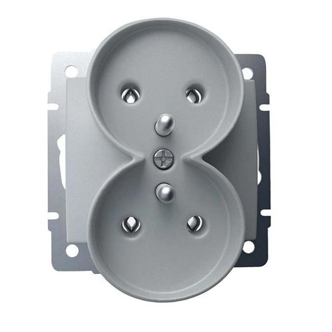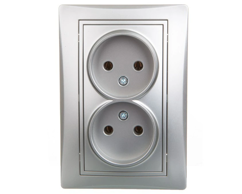 DOMO Gniazdo podwójne bez uziemienia kompletne śrubowe 16A 250V srebrny 011280143 24859
