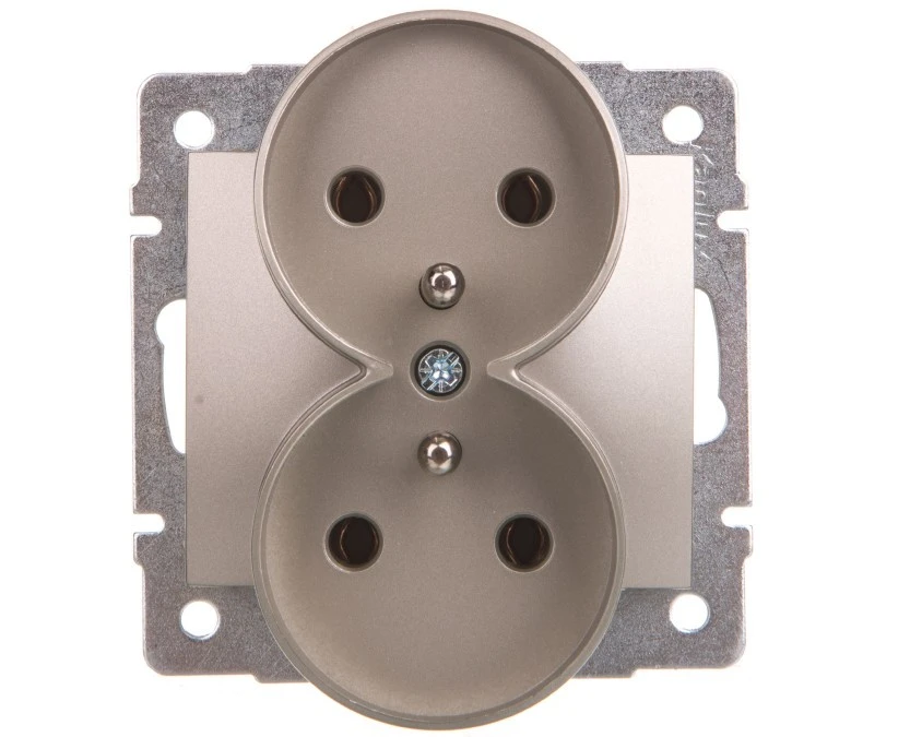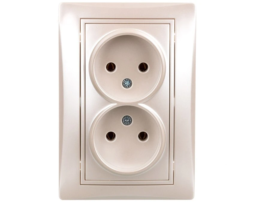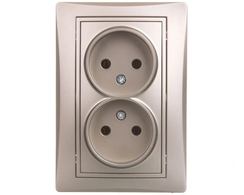 DOMO Gniazdo podwójne bez uziemienia kompletne śrubowe 16A 250V szampański 011280150 25036