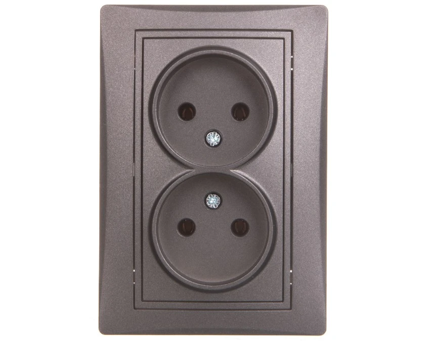 DOMO Gniazdo podwójne bez uziemienia kompletne śrubowe 16A 250V grafit 011280141 24918