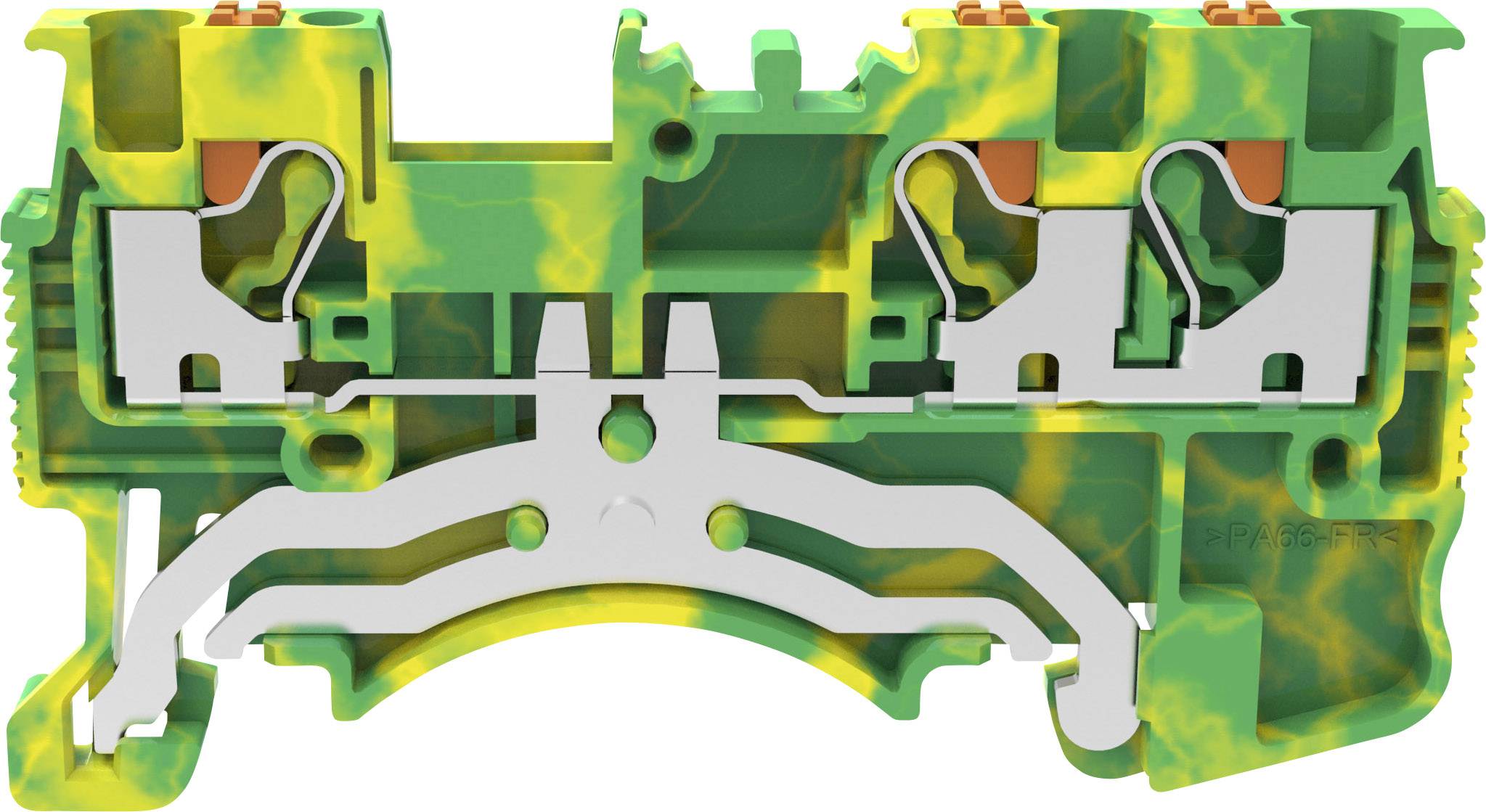 9. Złączka szynowa 1,5mm2 1P 3-przewodowa zacisk push-in żółto-zielona PE 3947 6.16