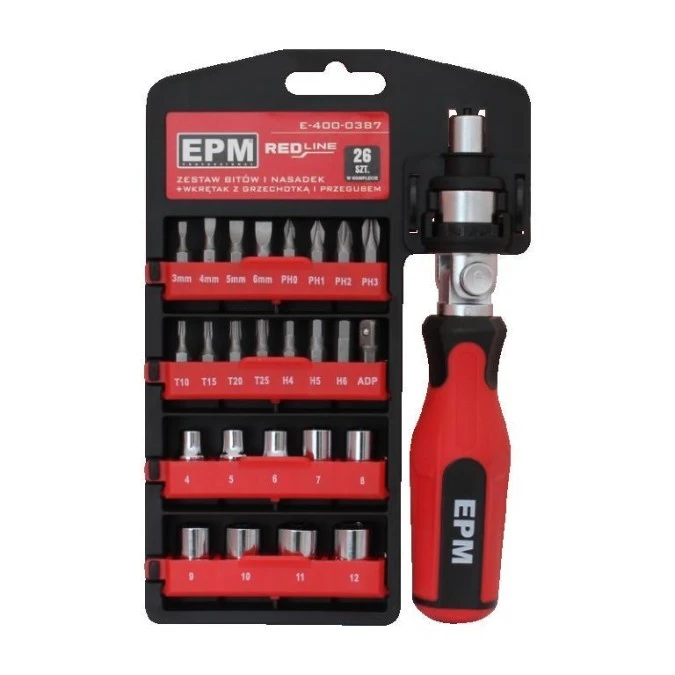 Zestaw bitów i nasadek 26 szt. red line e-400-0387