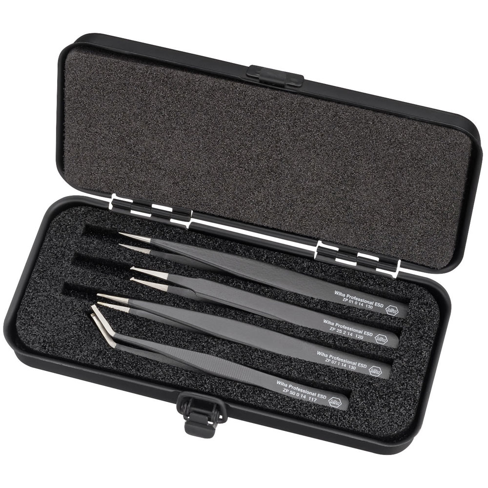 Wiha 32349 Professional ESD SMD Tweezer Set, 4 Piece