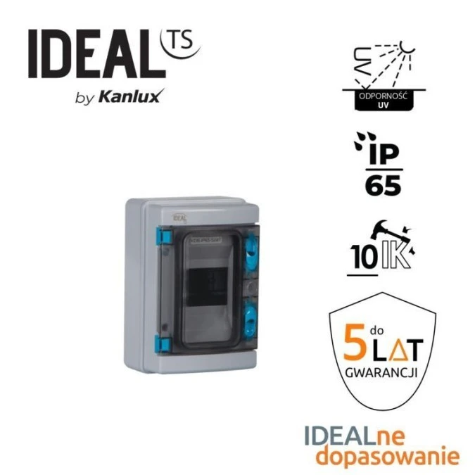 1. Rozdzielnica modułowa tworzywo 1x4 natynkowa IP65 IK10 N+PE II klasa drzwi szare transparentne KDB-IP65-S04T szary 38450 46.25