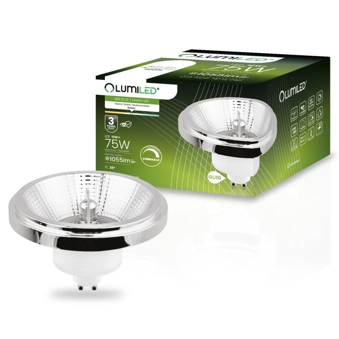 Żarówka LED GU10 ES111 10W = 75W 1055lm 4000K Neutralna 38 Srebrna LUMILED