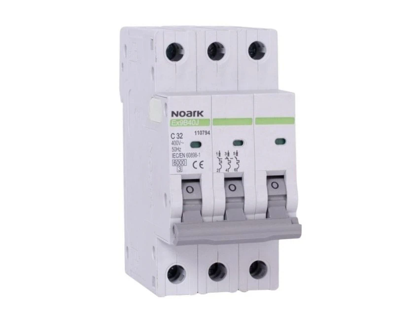 10. Wyłącznik nadprądowy S bezpiecznik 3-fazowy C32 (C 32A) 3-biegunowy 3P (400V AC) 2,25 modułu SLIM NOARK 52.00
