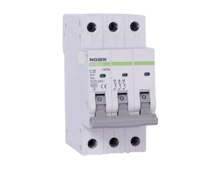 7. Wyłącznik nadprądowy S bezpiecznik 3-fazowy B32 (B 32A) 3-biegunowy 3P (400V AC) 2,25 modułu SLIM NOARK 50.49