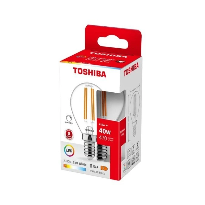 TOSHIBA LED FILAMENT G45 E14 4.5W 2700K DIM/10szt./