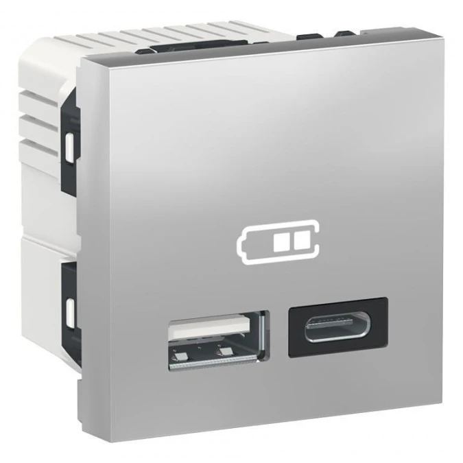 Gniazdo ładowania USB A+C 18W, aluminium