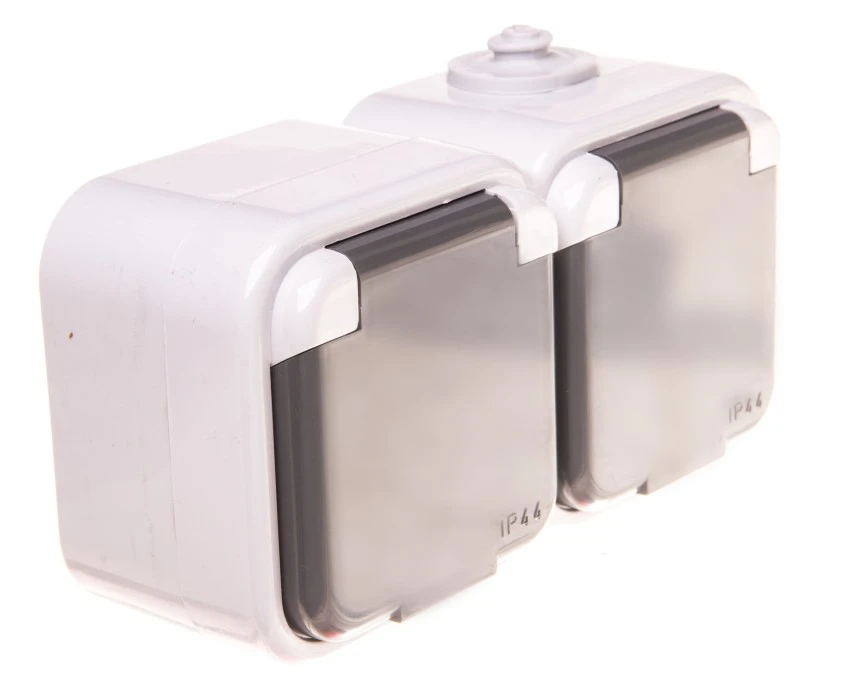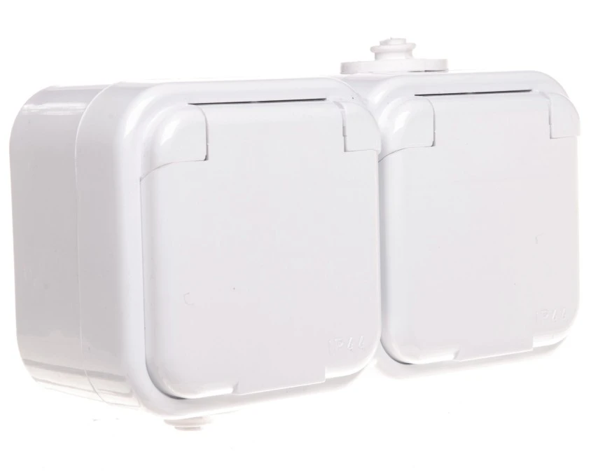DELFINA Gniazdo hermetyczne podwójne z/u IP44 klapka biała GNH-2DZ/00/w