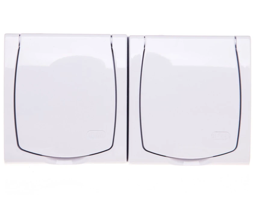 1. DELFINA Gniazdo hermetyczne podwójne z/u IP44 klapka biała GNH-2DZ/00/w 37.80