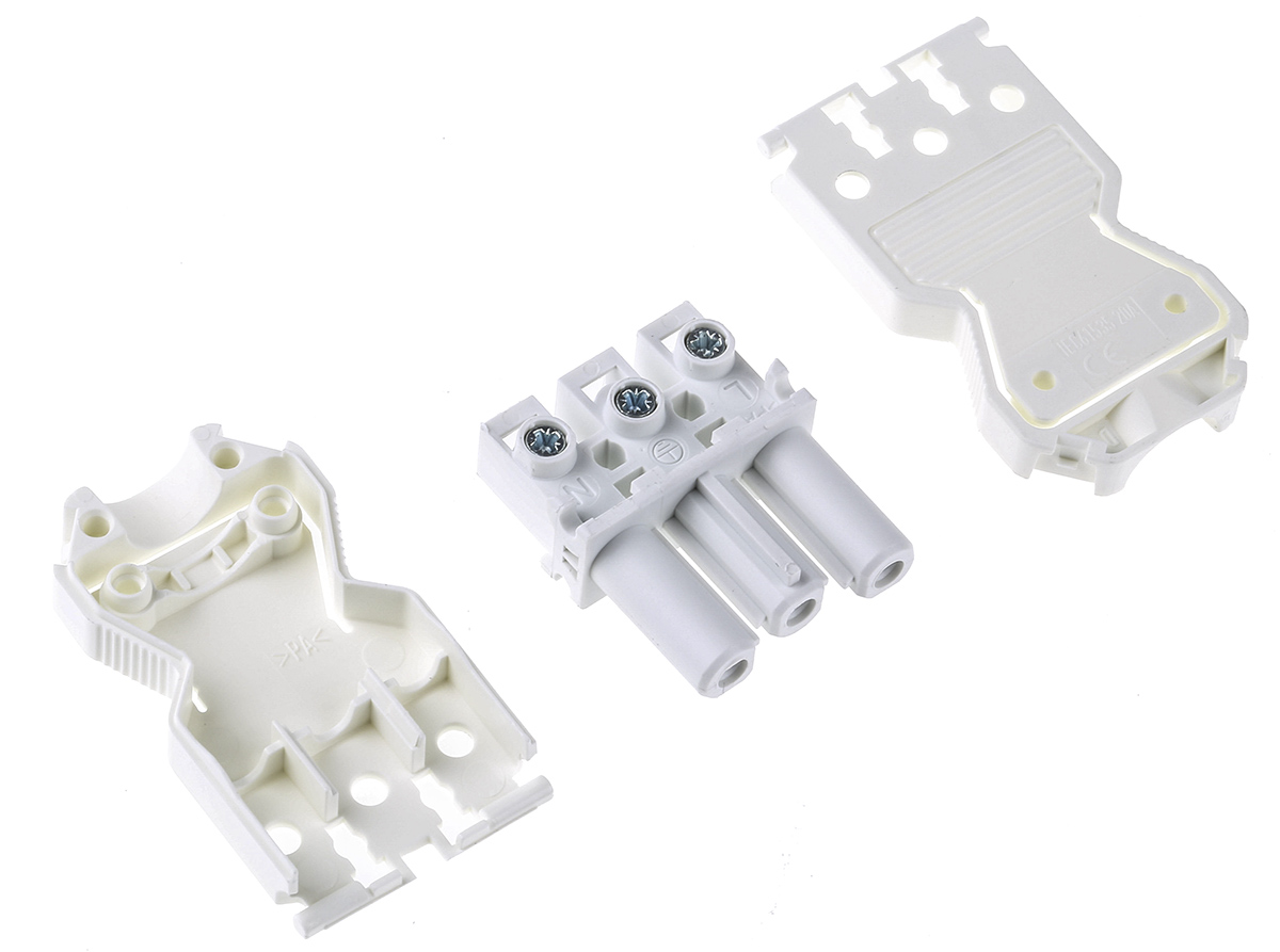 Przewód zasilania złącze A: 3-stykowe GST18i3 złącze B: 3-stykowe GST18i3 3m 20 A 250 V 2,5 mm² Biały