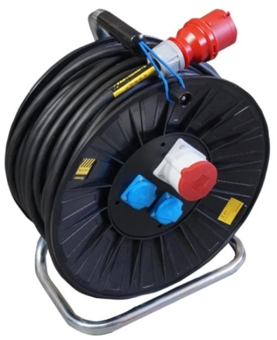 IP44 2xGS230V 16A, 1xCEE 16A 5P 400V, 30m Przedłużacz budowlany siłowy na bębnie, H07RN-F 5x2,5mm2 PARTNERSITE 17173