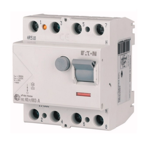 3. Wyłącznik różnicowoprądowy RCD 3-fazowy 40A 30mA typ AC 4-biegunowy 4P (230V / 400V AC) 4-modułowy EATON 138.73
