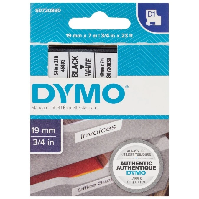 Taśma DYMO D1 Standard 19mm x 7m (biała / czarny nadruk) [45803 / S0720830] ORYGINALNA