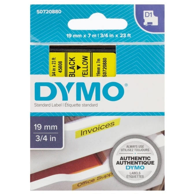 Taśma DYMO D1 Standard 19mm x 7m (żółta / czarny nadruk) [45808 / S0720880] ORYGINALNA