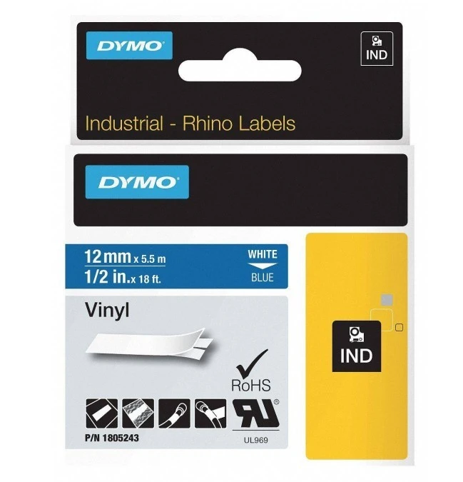 12. Taśma DYMO IND samolaminująca 24mm x 5,5m (biała / czarny nadruk) RHINO Industrial S0773860 ORYGINALNA 120.11