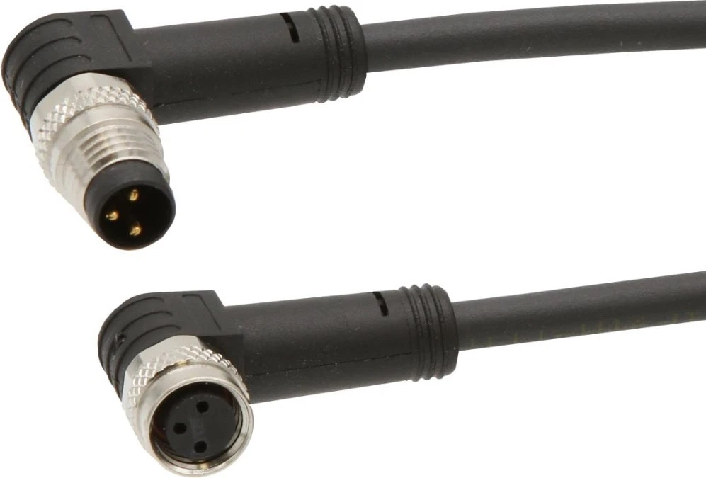 5. Złącze do samokonfekcjonowania M8 kątowe żeńskie 3-pinowe M12 męskie proste 3-pinowe 3x0,34mm² PUR 60V IP67 VK150F80 86.20