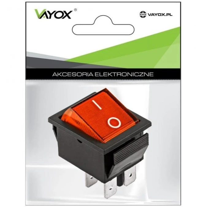 10. Przełącznik; klawiszowy (kołyskowy); C1570/IRS-203; ON-OFF-ON; 2 tory; czerwony; podświetlenie neonówka 250V; czerwony; bistabil 4.89