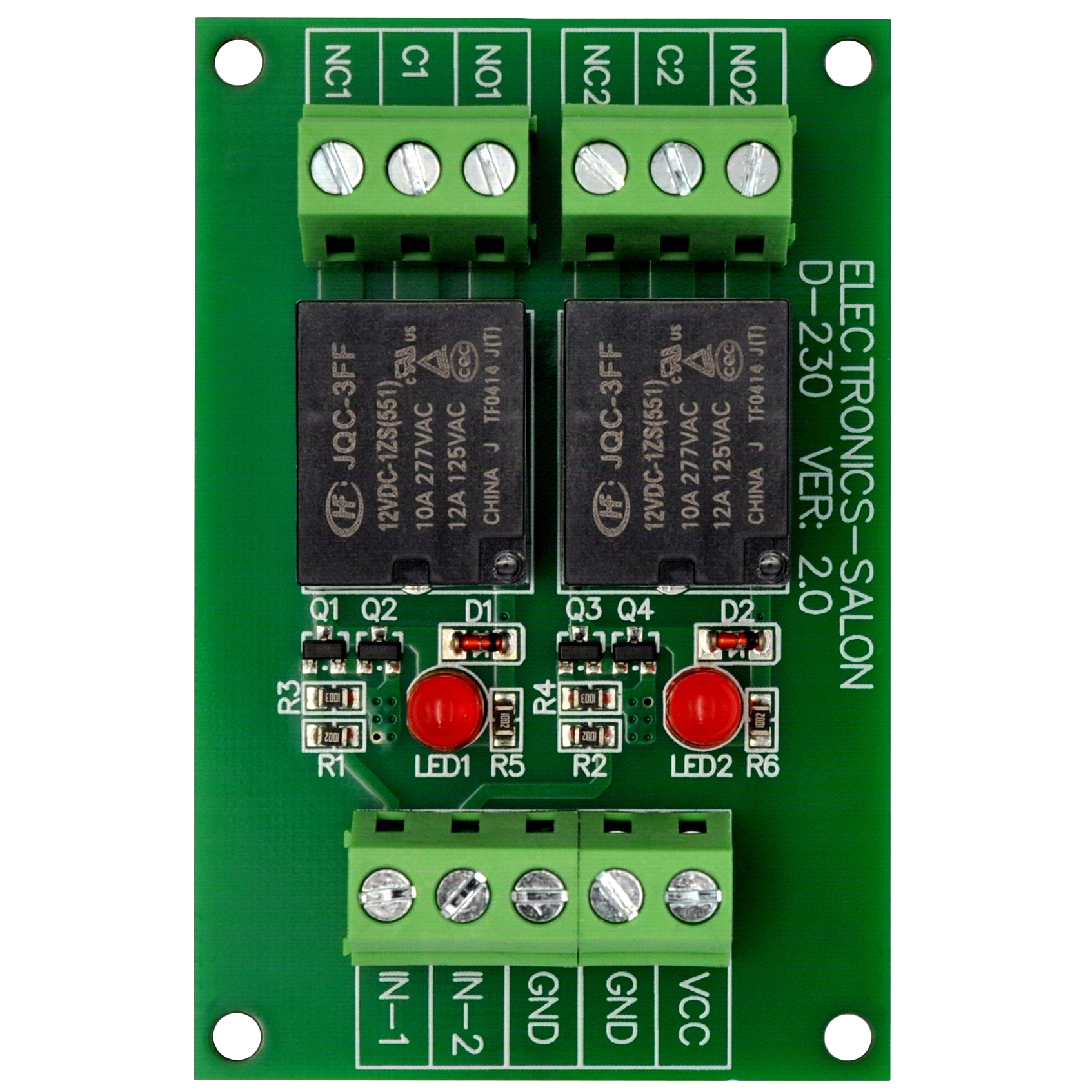 ELECTRONICS-SALON 2 SPDT 10Amp Power Relay Module, DC 12V Version.