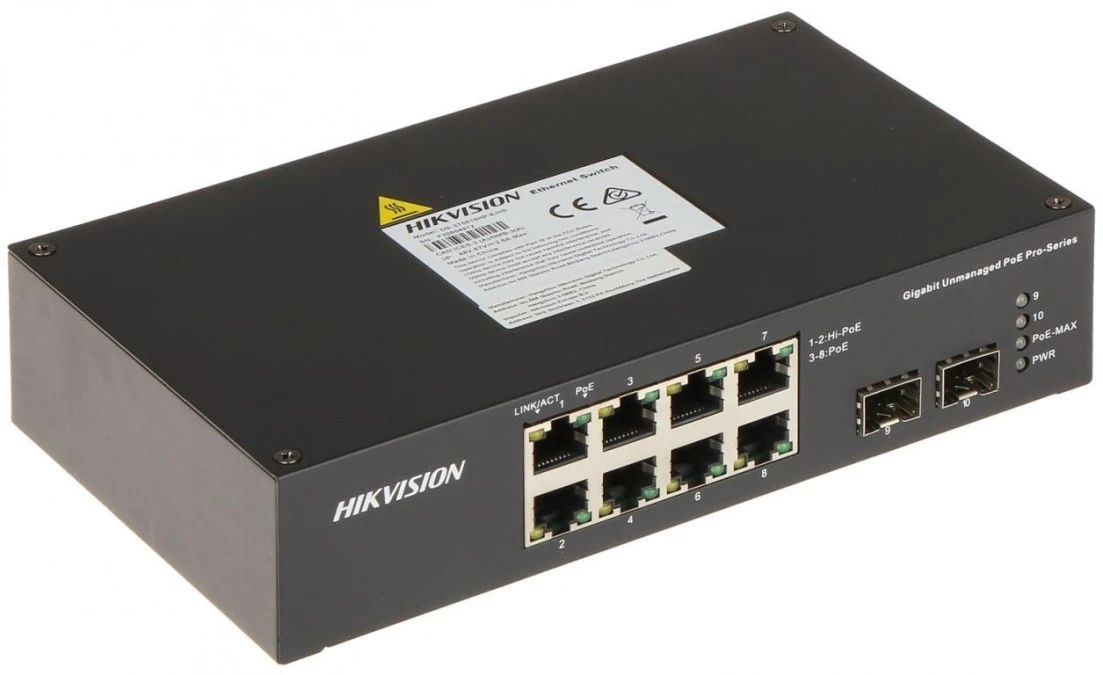5. Switch przemysłowy PoE 8-portowy 1Gbps + 2x SFP (niezarządzalny) DS-3T0510HP-E/HS 744.83