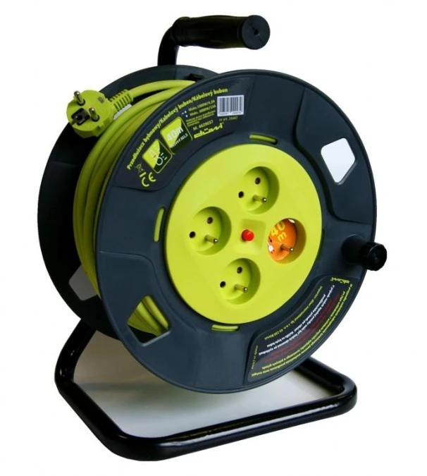 Przedłużacz bębnowy 40m OWY 3X1,5mm H05VV-F, 4-gniazdowy z zabezpieczeniem termicznym, lemon 24447
