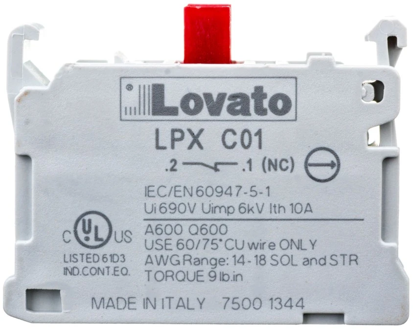 8. Styk pomocniczy zestyk 1NC (3A 230V) do przycisków sterowniczych serii Platinum LOVATO LPXC01 15.80