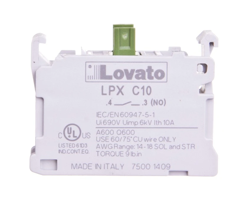 11. Styk pomocniczy zestyk 1NO (3A 230V) do przycisków sterowniczych serii Platinum LOVATO LPXC10 16.76