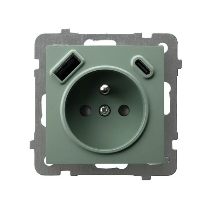 AS Gniazdo pojedyncze z uziemieniem z przesłonami torów prądowych, z ładowarką USB A+C zielony mat GP-1GZPUSBAC/m/84
