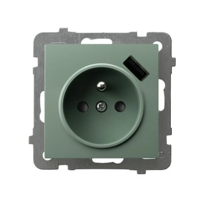 AS Gniazdo pojedyncze z uziemieniem z przesłonami torów prądowych, z ładowarką USB zielony mat GP-1GZPUSB/m/84