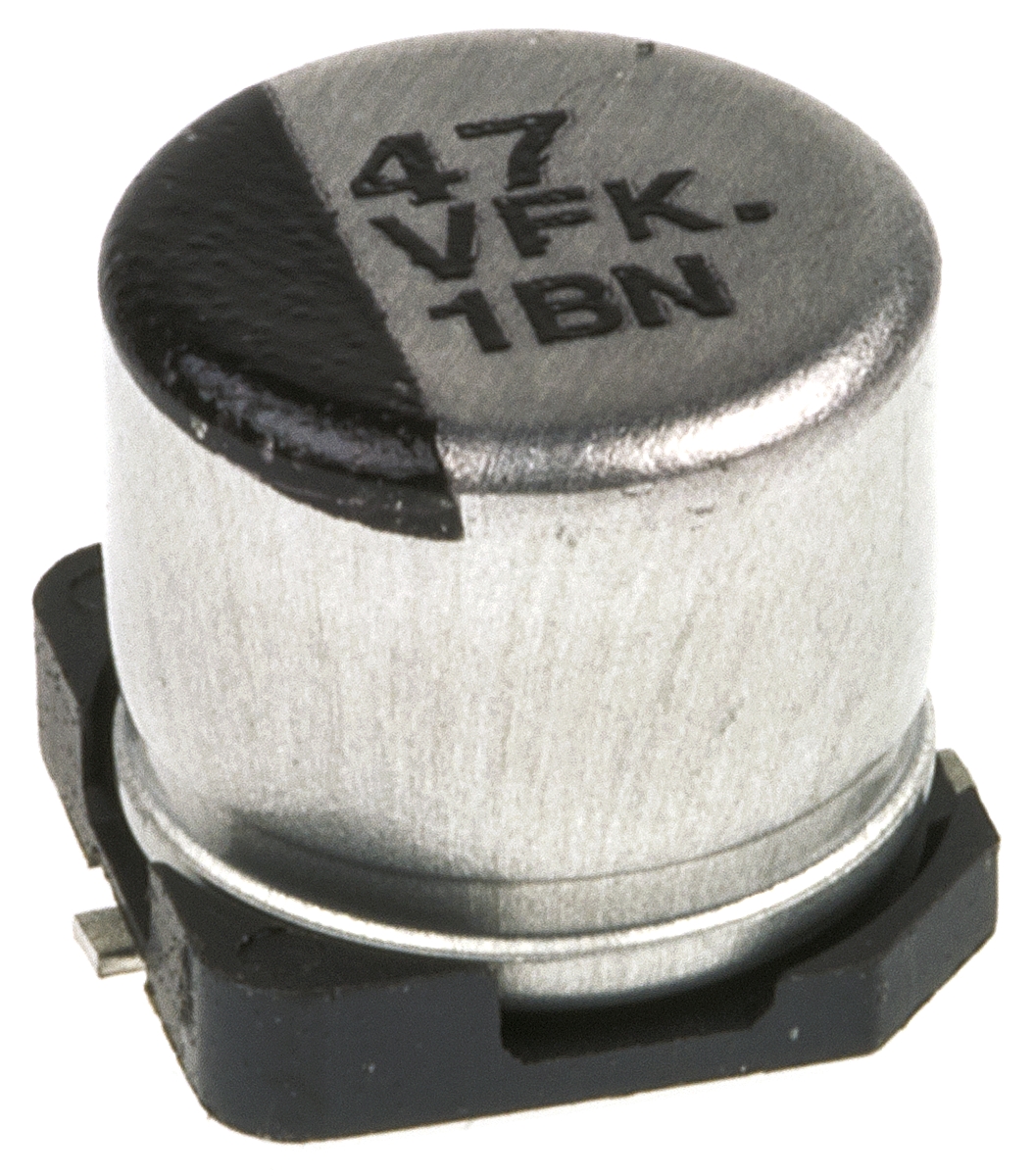 2. Aluminiowy kondensator elektrolityczny 47μF 25V dc SMD Panasonic roztaw: 1.8mm 6.3 (Dia.) x 5.8mm 2.25 x5
