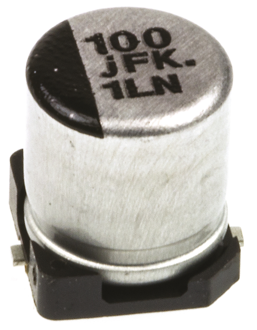 6. Aluminiowy kondensator elektrolityczny 100μF 6.3V dc SMD Panasonic roztaw: 1.5mm 5 (Dia.) x 5.8mm 2.38 x5