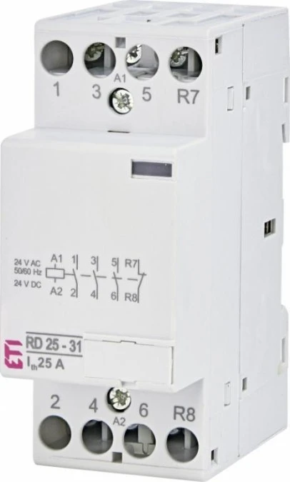 9. Stycznik modułowy 25A 3 styki zwierne i 1 styk rozwierny (2 mod. 4 bieg.) RD 25-31-230V AC/DC 002464012 145.88
