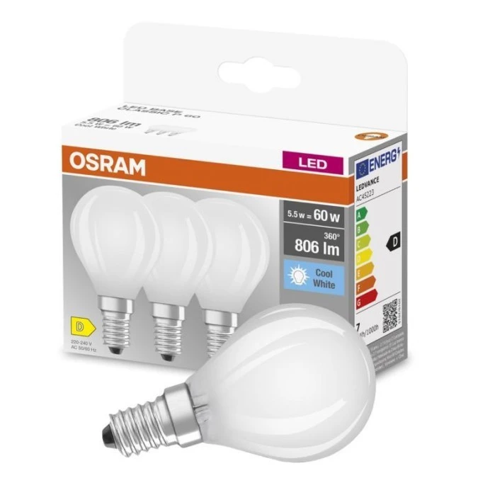 3PAK Żarówka LED E14 P45 5,5W = 60W 806lm 4000K Neutralna 300 Filament OSRAM BASE